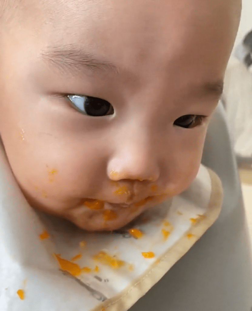 一点を見つめる生後6ヶ月の娘 その視線の謎に「かわいい」「見てる方が怖くなりますよね(笑)」