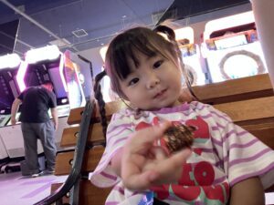 こちらの動画から1年ほど経過した現在は、お菓子の前にしゃがみこみ「これ、買っていい?」と言わんばかりに、遠慮気味に指を指して求めてくるという娘さん。たまに小さなカゴを見つけると、自分でお買い物を始めるのだそうです。