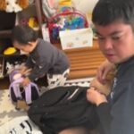 • 兄弟のように育ってきた9ヶ月息子とハスキー犬。しかし…ばあばに怒られた直後、2人のまさかの行動に「そっくりだな」「コントか」