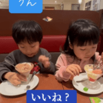 パパの話を聞く2人(@momotaro_famさんより提供)