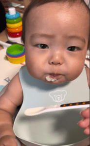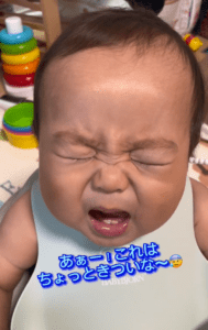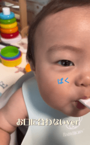 基本何でも食べる息子さん。特に好きな食べ物はバナナ、白米(混ぜご飯もあり)で、嫌いな食べ物は、りんご、しらすとのこと。動画で口から出したのは、りんごだったようです。