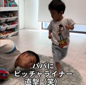 2歳3ヶ月の息子さんは野球が大好き。毎晩、パパさんがご飯を食べ終えると「あきゅうあきゅう(野球)」と言うようです。