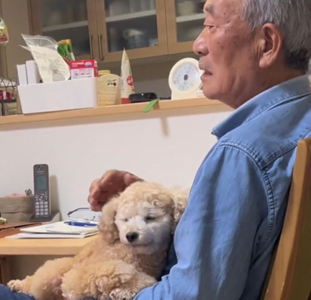 膝の上に乗せているじいじ(@adorable_sonさんより提供)