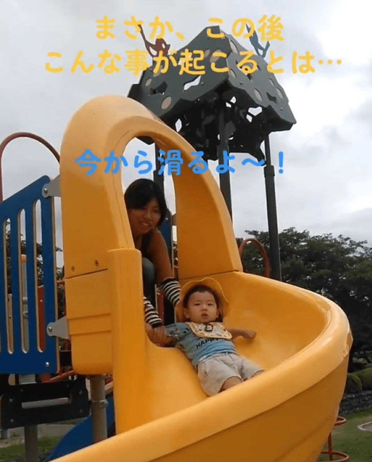 公園の滑り台で遊ぶ1歳息子…まさかの展開に「思わず笑ってしまいました」「一瞬過ぎてイリュージョン(笑)」の声