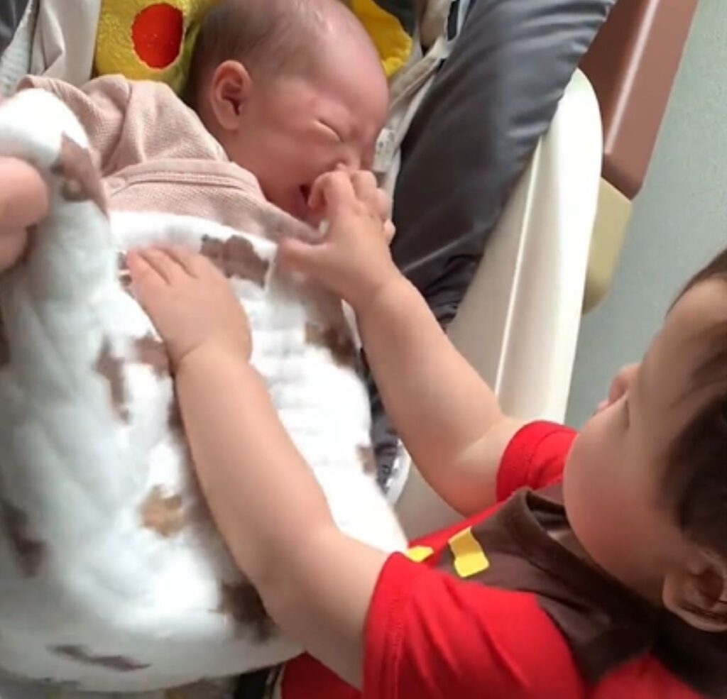 • 兄弟のように育ってきた9ヶ月息子とハスキー犬。しかし…ばあばに怒られた直後、2人のまさかの行動に「そっくりだな」「コントか」