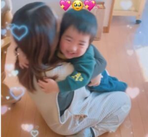 ママさんが部屋の扉を開け、両手を広げると、嬉しそうに飛び込んできたお兄ちゃん。