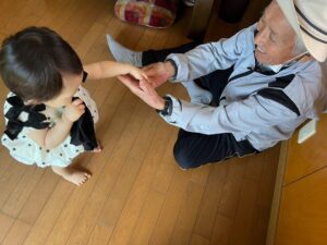 昔は仕事一筋な姿もあったようですが、今ではいつも楽しませようと、いろいろ考えてあやしてくれる優しいひいおじいちゃんのようです。