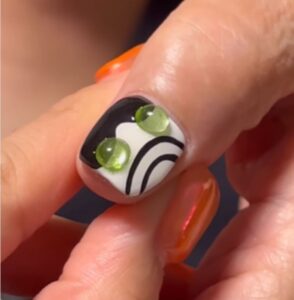 白黒のモノトーンネイルやオレンジ&ブルーのポップなネイル、オレンジ&グリーンの個性派ネイル、マグネットネイルなど、色のリクエストをもらい、デザインはいつもマツコさんにおまかせしているおばあちゃん。