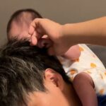 肩に娘さんを乗せてあやしていると…(@2525.idechiさんより提供)