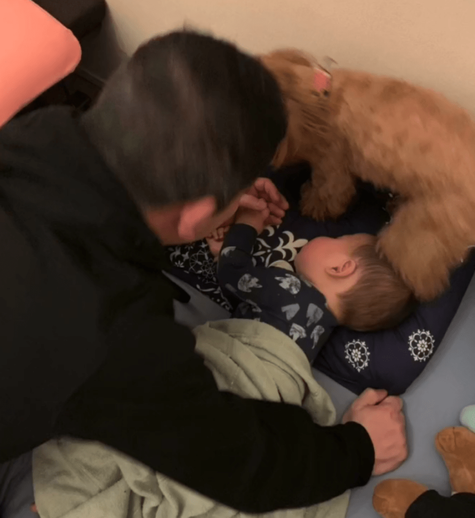 • 疲労困憊で、寝かしつけできず寝落ちしたママ。しかし直後、2歳の双子がとった行動に「浄化された」「幸せ空間」