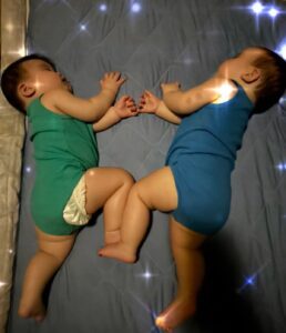 このとき以外でも、同じポーズで寝ていることがあるという双子くん。そんな姿に、ママさんは「さすが双子だな~」と思うのだそう。あるときには、向き合って寝ている姿が似ていて可愛いと思ったのも束の間、同じタイミングでお口がパクパク動いて、2人でヒソヒソ話しをしているかのような姿になっていたといいます。