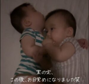 当時生後7ヶ月の双子くんは、一緒の布団で寝ていました。しかしよく見てみると、弟くんは寝ているお兄ちゃんの手をハムハムしているのです!