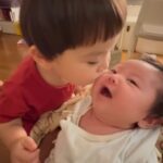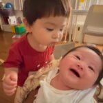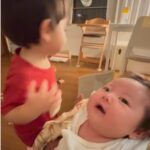 • 兄弟のように育ってきた9ヶ月息子とハスキー犬。しかし…ばあばに怒られた直後、2人のまさかの行動に「そっくりだな」「コントか」