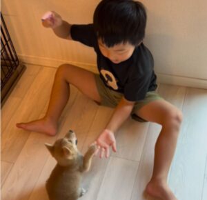 2023年、ソラちゃんを迎えて1ヶ月くらい経った頃、当時6歳の甥っ子くんとソラちゃんが遊んでいました。生後4ヶ月のソラちゃんは、元気いっぱいの様子。甥っ子くんはお手をさせようとしていますが、幼いソラちゃんはおやつに夢中で落ち着かないようです。