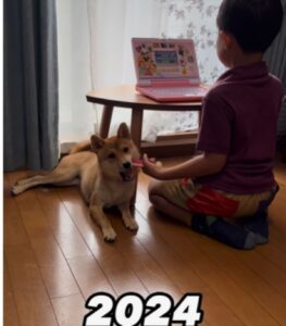 柴犬をお迎えした1年後…甥っ子とワンちゃんの様子に「大きくなった」「どちらも成長期」