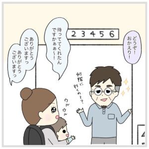エレベーターを待っていると、もう少しで乗れるタイミングで息子さんが走りだしてしまいました。すると「ストップ~」と知らないおじさんが優しく止めてくれました。