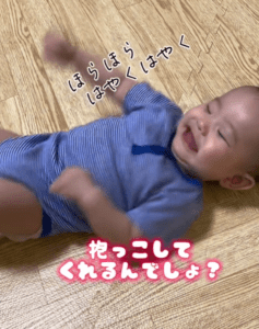 息子さんは、普段から抱っこされるのが大好きな「抱っこマン」。また、人の表情を伺ってはいろいろなことを仕掛けてくる、かまってちゃんな一面もあるのだとか。