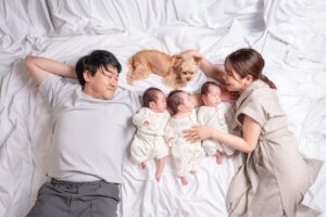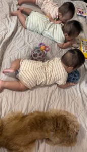少し距離を取って見守っていることが多く、夜中に三つ子ちゃんが夜泣きするといち早く駆けつけてくれるそう。