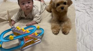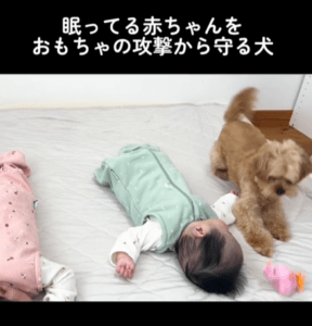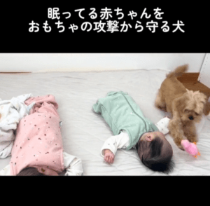 眠りについた赤ちゃんたちに近づく動くおもちゃ。それに気づいたワンちゃんのとった行動がTikTokに投稿されると「かわいい」「幸せ3倍」「優しい」などのコメントが寄せられ話題になっています。