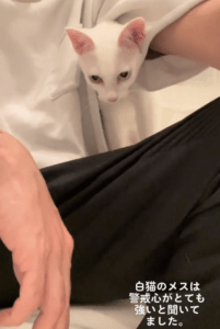 「白猫のメスは警戒心が強い」と思っていた投稿者さんでしたが、家に連れて帰った途端、その心配は杞憂となりました。