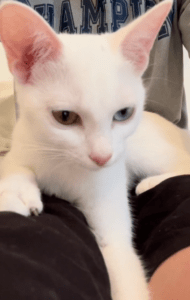 初めて会った時の印象は、大人しい猫で「オッドアイ」が神秘的な猫ちゃんだったのだとか。