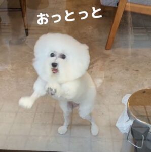 そんなメロンちゃんは、トリミング後にお迎えに行くと、毎回とっても嬉しそうにしてくれます。この日のトリミングでも、ママさんの存在に気付いた途端、ガラスに飛びついて大喜び!