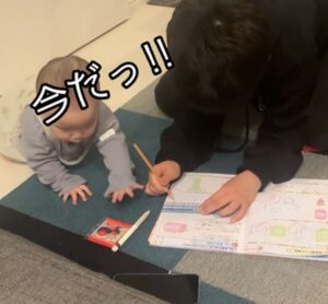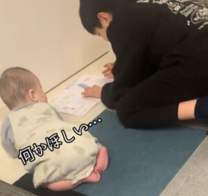 生後7ヶ月の弟くんは、普段から11歳のお兄ちゃんのプリントやノート、教科書などを破ってしまうことがあるそう。そのため、ママさんは「机で宿題したら?」と言っていましたが、お兄ちゃんは床で宿題を続けていました。構ってほしくてそばに寄ってくる弟くんが可愛いようで、頑なに床で宿題をするのだとか。