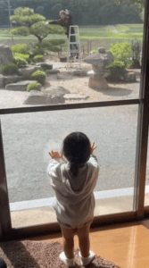 松の木を整えるパパさんに向かって、一生懸命呼びかける娘さんの姿に多くの人が癒されました。