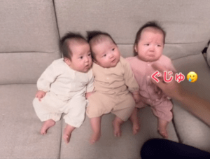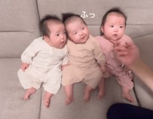 こちらの投稿には多くのコメントが集まり、三つ子ちゃんたちの三者三様のリアクションにほっこりした人がたくさん。