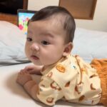 • よだれ掛けをじっくり見つめる5ヶ月娘。次の瞬間…思わず写真に収めた“まさかの行動”に「可愛すぎる」「尊い」「わかるんだね」