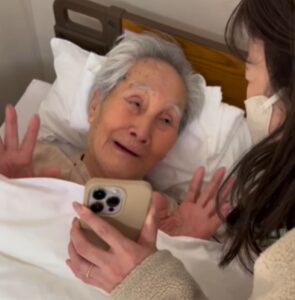 92歳のひいおじいちゃんは入院していました。そこで1歳の息子さんを連れてお見舞いに行くことにしたママさん。しかし、面会のときに息子さんが眠ってしまっていたため、まずは息子さんの動画を見せることにしました。