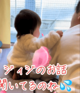 そしてお昼寝の時間になったとき、お昼寝のためにマットレスを敷いていたおじいちゃんに駆け寄り、まだまだ遊び足りなさそうなお孫さん。おじいちゃんが大好きなお孫さんは、まだ片言しか話せない言葉で「ジィジ!ジィー!」と話しかけていたそうです。