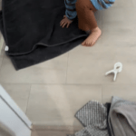 • ストレッチ中…おしり付近に違和感を覚えた女性。見てみると、尊すぎる元凶が発覚し「お手伝い…?w」「ゆりかご笑」