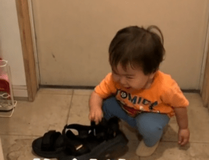 玄関で何をしているのかと思いきや、投稿者さんのサンダルの匂いをかぐ息子さんの姿がありました。