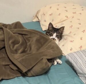 クロちゃんはしばらく布団から出てくることはなく、ご飯を食べ始めるタイミングでだるそうに起きてきて甘えてきたそうです。
