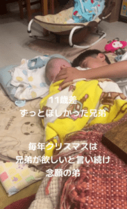 11歳のお兄ちゃんは、幼稚園の年長さんのころから「ひとりは嫌やなぁ、兄弟が欲しい、できれば弟がいい」と言い続けていました。そして、6年越しにその願いが叶います。