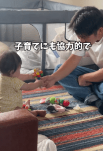 「毎日一つは大笑いすることがあり、頭の回転が早いので、家事や育児においても細かいところまで気が利くのだと思います。いつも笑わせてくれる夫のおかげで、楽しく家事と育児ができています」と、旦那さんの優しさや機転が、家族全体を楽しい空間へと導いているようです。