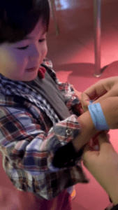 3歳11ヶ月になった息子さんはついに身長が90cmを超え、リストバンドをもらうことができました。