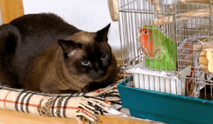 ママさんは「うちにはコザクラインコのポルカもいますが、襲いかかることもなく、付かず離れずの関係です。