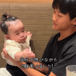 お兄さんに抱っこされて泣き止む妹さん(@yuasam0530さんより提供)