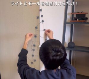 その後、フックにライトとモールを巻き付けていくだけです。