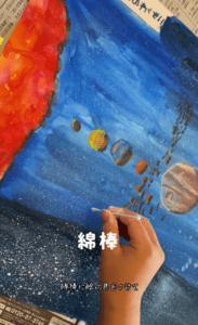 息子さんが小学1年生のときに描いた宇宙の絵を、@t.s.megさんがTikTokに投稿すると「1年生が描いたとは思えない」「天才」「描き方教えてください!」と話題になり、その描き方が動画で紹介されました。