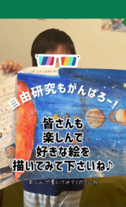 息子さんのモチベーションを保つために「いいねいいね!」「わー!綺麗!」と声かけでたくさん褒めることを心がけていました。息子さんが描いた宇宙の絵については「最後まで描ききってすごい」と感動し、宇宙への愛が伝わる素敵な絵だと感じていました。