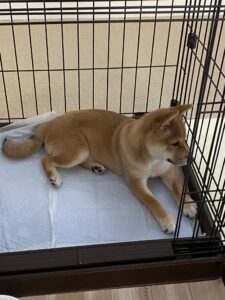 生後100日頃のたわしくんは、犬用のトイレがとっても広く見えるほどの大きさでした。