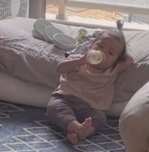 娘さんは片手で哺乳瓶を持って飲むことはよくありましたが、肘をついて足を組んで飲むスタイルは初めて。そんな娘さんに「ウソでしょ(笑)」と声が出てしまったママさん。