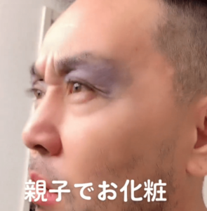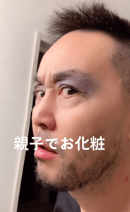 なんと、娘さんの隣でパパさんが化粧をしていたのです。