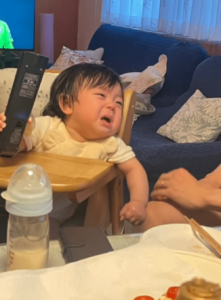 動画では泣きそうな表情で終わっていますが、その後もおじいちゃんが笑いかけたり近づくと泣いていたそうです。
