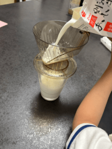 ママさんからドリッパーの穴を見せられて理解した息子さんは、翌日になるとコップの上にドリッパーを置いて牛乳を注いでいたといいます。
