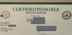 ミルモくんを家族に迎えたのち、ブリーダーさんから送られてきた国際公認血統証明書を確認すると、意外な事実が判明!ミルモくんの本名の欄に「キンタロウ」と記載されていたのです。
