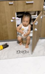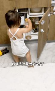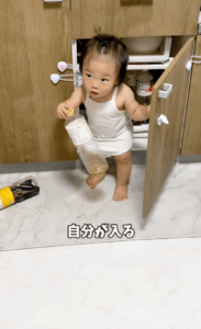 握り飯(@nigirimeshi_style)さんがTikTokに投稿した、1歳2ヶ月の息子さんがキッチンで棚に入ろうとする動画が「可愛いから許せる」「ヤドカリみたい」「超可愛い」といったコメントが寄せられ、話題になりました。